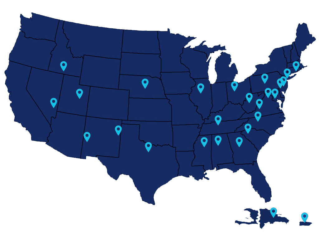 U.S. zip codes within 90 minutes of a Aquafeel office.